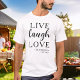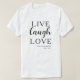 El diseño de camisa personalizado de estilo moderno 'vive, ríe, ama' con el nombre y el año de fundación es perfecto para bodas y aniversarios,