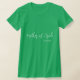 La camiseta de mujer se muestra en un estilo de cuello de tripulación y mangas cortas en verde con texto de color blanco: Madre de la Novia y un nombre de muestra personalizado.