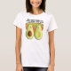 Divertido aguacate tee. El aguacate se mira con cariño frente al tazón del guacamole, con las palabras: "Nos hicieron el uno para el otro... y el guac".