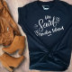 Diseño moderno y lindo para la fiesta de la boda o para un fin de semana de chicas. Las palabras en espiral "Nosotros dijimos Isla Amelia" en una camiseta negra, tiene un corazón y seguro será notado. Destino de la fiesta de despedida de soltera....Isla Amelia, Se puede usar para la cena de ensayo y junto con tu grupo de boda.