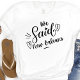 Diseño moderno lindo para la fiesta de la boda o para una despedida de soltera. Las palabras en espiral "Nosotros dijimos Nueva Orleans" en una camiseta blanca, tiene un corazón y seguro será notado. Destino de la fiesta de despedida de soltera... Nueva Orleans, Se puede usar para la cena de ensayo y junto con tu fiesta de boda.