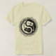 Un símbolo Yin Yang con guitarras acústicas, rodeado de notación circular (¿un rondo?). Arte blanco y negro, en camisetas, botones, pegatinas, regalos.