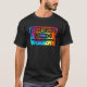 El color es muy bonito al natural, como la foto. El tejido es suave y de buena calidad. Sin defectos en el tintado, ni hilos sueltos o descosidos. Bien la impresión. Los bordes de las letras y el dibujo son nítidos, y el color contrasta muy bien con el de la camiseta.