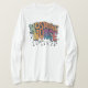 El llamativo diseño de camisetas muestra el texto "Nuance nostálgico" en un gradiente retro multicolor. El lúgubre texto combina letras en negrita para "Nostalgic" con un delicado guión cursivo para "Nuance". Ambas mitades están inundadas en un espectro de colores, con algunas letras superpuestas para dar un toque de brillo.