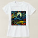 A.I. creó una impresión de nubes surrealistas de tormenta iluminadas mientras se deslizan a través de un cielo celestial nocturno de estrellas, luna y planetas sobre un paisaje de montañas vibrantes y colinas ondulantes