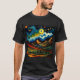 A.I. creó una impresión de nubes surrealistas de tormenta iluminadas mientras se deslizan a través de un cielo celestial nocturno de estrellas, luna y planetas sobre un paisaje de montañas vibrantes y colinas ondulantes