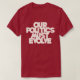El color es muy bonito al natural, como la foto. El tejido es suave y de buena calidad. Sin defectos en el tintado, ni hilos sueltos o descosidos. Bien la impresión. Los bordes de las letras y el dibujo son nítidos, y el color contrasta muy bien con el de la camiseta.