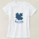 Camiseta con una hoja de arce en el tartán del distrito para Nueva Escocia - un brillante patrón azul, amarillo y verde - con opciones de texto personalizado.