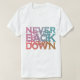 Esta dinámica camiseta muestra la audaz frase "Never Back Down" en letras vibrantes de varios colores, ambientadas en un fondo motivante y abstracto. El diseño geométrico y la combinación de colores enérgicos crean una pieza llamativa e inspiradora, perfecta para quienes adoptan la resiliencia y la determinación