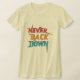 El diseño de la camiseta muestra el texto "Never Back Down" en un diseño negrita y multicolor. Cada palabra puede ser de un color diferente, creando una demostración dinámica y llamativa de resiliencia. El tipo de letra en sí podría ser fuerte y ligeramente angular, enfatizando el espíritu determinado del mensaje. Recuerda que no hay personas incluidas en este diseño.