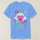 El color es muy bonito al natural, como la foto. El tejido es suave y de buena calidad. Sin defectos en el tintado, ni hilos sueltos o descosidos. Bien la impresión. Los bordes de las letras y el dibujo son nítidos, y el color contrasta muy bien con el de la camiseta.