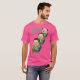 El color es muy bonito al natural, como la foto. El tejido es suave y de buena calidad. Sin defectos en el tintado, ni hilos sueltos o descosidos. Bien la impresión. Los bordes de las letras y el dibujo son nítidos, y el color contrasta muy bien con el de la camiseta.
