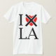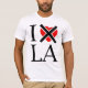 Un juego en el camisetas del LA del corazón de I, pero con el corazón cruzado hacia fuera en lugar de otro