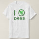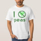Odio los guisantes. El diseño utiliza letras verdes, un corazón verde y el signo internacional "NO" para leer "Odio los guisantes". Para aquellos que no los "aman", realmente los detestan, pero tienen sentido del humor, les encanta reír y les gusta que les hagan cosquillas en su hueso de la risa.