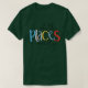 El color es muy bonito al natural, como la foto. El tejido es suave y de buena calidad. Sin defectos en el tintado, ni hilos sueltos o descosidos. Bien la impresión. Los bordes de las letras y el dibujo son nítidos, y el color contrasta muy bien con el de la camiseta.