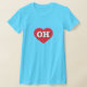 Esta camiseta tiene un vibrante corazón rojo que contiene las letras en negrita, blanca y alta del funda OH, la abreviatura oficial de Ohio, el estado de los cohetes.