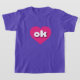 Esta camiseta tiene un vibrante corazón rosado caliente que contiene las letras fundas negrita, blanca, redondeadas y bajas ok, una abreviatura juguetona para Oklahoma, el estado anterior.