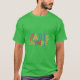El color es muy bonito al natural, como la foto. El tejido es suave y de buena calidad. Sin defectos en el tintado, ni hilos sueltos o descosidos. Bien la impresión. Los bordes de las letras y el dibujo son nítidos, y el color contrasta muy bien con el de la camiseta.