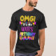 El color es muy bonito al natural, como la foto. El tejido es suave y de buena calidad. Sin defectos en el tintado, ni hilos sueltos o descosidos. Bien la impresión. Los bordes de las letras y el dibujo son nítidos, y el color contrasta muy bien con el de la camiseta.