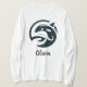 Camiseta personalizada que presenta un ilustracion redondo moderno y elegante de una orca con una mano humana que muestra el amor a la orca.