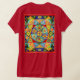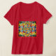 Los patrones geométricos vibrantes llenan la imagen, con círculos, triángulos y remolinos en un calidoscopio de colores que incluyen azul, verde, amarillo y rojo. El diseño intrincado crea una sensación de simetría y equilibrio.