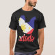El color es muy bonito al natural, como la foto. El tejido es suave y de buena calidad. Sin defectos en el tintado, ni hilos sueltos o descosidos. Bien la impresión. Los bordes de las letras y el dibujo son nítidos, y el color contrasta muy bien con el de la camiseta.