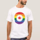 Esta colorida obra de arte presenta un círculo arco iris con una hoja de arce canadiense.
