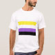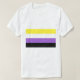 La bandera no binaria fue creada en 2014 por el activista Kye Rowan. Cada color de franja representa diferentes tipos de identidades no binarias: amarillo para las personas que se identifican fuera del binario de género, blanco para las personas no binarias con múltiples géneros, morado para las que tienen una mezcla de géneros masculinos y femeninos, y negro para las personas de edad.