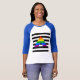 Camiseta raglán de manga 3/4 de Bella+Canvas, Blanco/Azul real, L de adulto