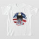 El águila orgullosa de EE.UU. se sitúa frente a las estrellas y rayas de la bandera estadounidense con texto plateado de EE.UU. Este es un diseño patriótico que puedes estar orgulloso de usar.