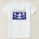 Camiseta con la orgullosa mamá Cheer en la espalda con letras azules; personalizada en el área del bolsillo delantero con el nombre de mamá o de su hijo y monogramada inicial.
