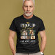 Ceremonia de graduación camiseta negra y dorada con un mortero de graduados, 5 fotos de tu hijo o hija, el dicho "orgulloso padre del graduado", su nombre, lugar de estudio y año de clase.