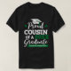 Celebra la graduación de tu primo con esta moderna camiseta que presenta una tipografía de "Orgulloso COUSIN de un graduado de 2023" con fuentes blancas y verdes decoradas con un gorro de grado con un tassel verde; personaliza fácilmente esta camiseta con el año de graduación y el nombre del graduado editando los campos de plantilla. Esta camiseta es parte de nuestra "Graduación Familia que coteja camisetas" con muchos artículos de coordinación para cualquier miembro de la familia.
