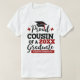 Celebra la graduación de tu primo con esta moderna camiseta que presenta una tipografía de "Orgulloso COUSIN de un graduado de 2023" con fuentes rojas y negras decoradas con un gorro de grado con un tassel rojo; personaliza fácilmente esta camiseta con el año de graduación y el nombre del graduado editando los campos de plantilla. Esta camiseta es parte de nuestra "Graduación Familia que coteja camisetas" con muchos artículos de coordinación para cualquier miembro de la familia.