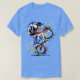 El color es muy bonito al natural, como la foto. El tejido es suave y de buena calidad. Sin defectos en el tintado, ni hilos sueltos o descosidos. Bien la impresión. Los bordes de las letras y el dibujo son nítidos, y el color contrasta muy bien con el de la camiseta.