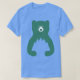 El color es muy bonito al natural, como la foto. El tejido es suave y de buena calidad. Sin defectos en el tintado, ni hilos sueltos o descosidos. Bien la impresión. Los bordes de las letras y el dibujo son nítidos, y el color contrasta muy bien con el de la camiseta.