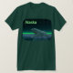 Un momento pacífico en la larga noche ártica. Un oso polar descansa en el borde de una zona abierta en el hielo de la manada. Las auroras boreales brillan a lo lejos; las estrellas brillantes brillan sobre sus cabezas. El texto que dice "Alaska" aparece en verde brillante y blanco. Los osos polares están en peligro. ¿Cuánto tiempo más podrán ocurrir escenas como esta? Por favor, ayuden a salvar a los osos polares de la extinción.