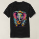 Un elefante talentoso toca una guitarra con su baúl sobre un fondo blanco, mostrando su destreza musical y su encanto único.