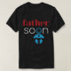 Padre pronto, diseño divertido para la camiseta de los hombres negros. "Padre" está escrito en una fuente roja muy original. El segundo "o" de "pronto" es la cara sonriente de tu futura bebé. El resto del texto está escrito en un tipo de letra blanco redondeado. Los colores de esta ilustración vectorial se pueden modificar fácilmente.
