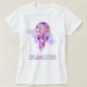 Camiseta mágica mística. Un diseño de temática tribal nativa estadounidense creado con acuarelas. Un rayador de color rosa con una colcha y plumas delicadas colgando. Está situado encima de una mancha de pintura color morado. El texto dice "dreamcatcher" pero puede personalizarse o editarse a su gusto.