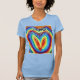 Camiseta femenina con diseño que muestra la llama gemela envuelta en colores arcoiris con la inscripción usando el programa de Cherokee.