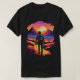 Un diseño de paisaje montañoso fresco de estilo retro con un toque colorido, donde se puede practicar senderismo al atardecer.