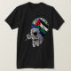 Palestina Libre, Palestina está en el corazón, la bandera palestina está alta en camiseta espacial. Astronauta argelino sostiene una bandera palestina en el espacio.