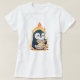 Camiseta Panicked Cartoon Penguin Holding Map with Fire