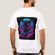 Una representación digital de una Pantera Negra cibernética rodeada de luces de neón futuristas. La luna rosa audaz y la intrincada circuitería transmiten una mezcla única de naturaleza, tecnología y surrealismo en un estilo fascinante.