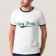El color es muy bonito al natural, como la foto. El tejido es suave y de buena calidad. Sin defectos en el tintado, ni hilos sueltos o descosidos. Bien la impresión. Los bordes de las letras y el dibujo son nítidos, y el color contrasta muy bien con el de la camiseta.