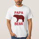 Camiseta de oso de papá. Encima y debajo de un oso con manchas rojas y negras están las palabras de papá arriba y Oso abajo con texto rojo y negro.