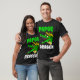 El color es muy bonito al natural, como la foto. El tejido es suave y de buena calidad. Sin defectos en el tintado, ni hilos sueltos o descosidos. Bien la impresión. Los bordes de las letras y el dibujo son nítidos, y el color contrasta muy bien con el de la camiseta.