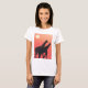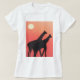 Esta camiseta blanca de damas está diseñada con mi representación de dos siluetas de jirafas adornadas con una puesta de sol naranja.