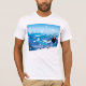 Este diseño es un esquiador cuesta abajo. El esquiador corre por las pistas cubiertas de nieve. Este diseño de esquí cuesta abajo se ve genial en esta camiseta de Mens